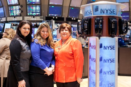 NYSE Bell Ringing for WIFS » The Bell Ringinger: Susan Combs, National Director; Jen McClellan, NY Metro President; Karen Roberts, National President